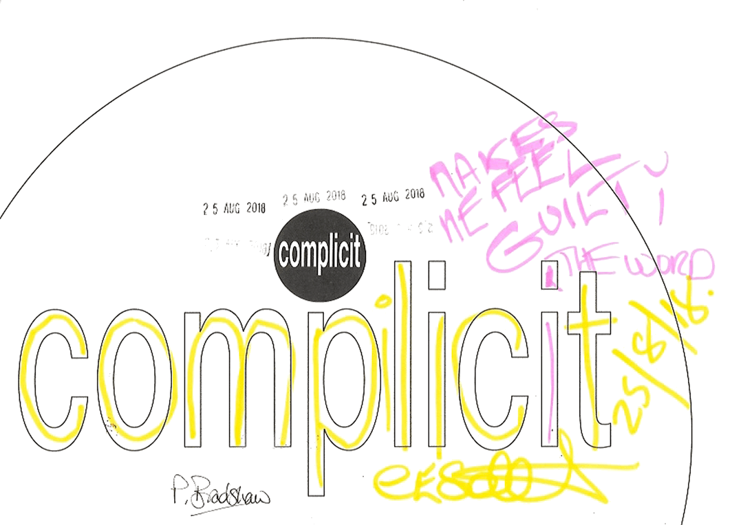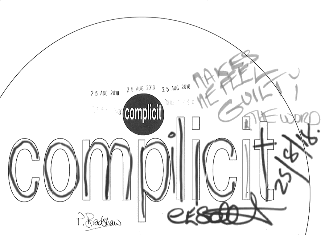 'complicit' was a visitor participation art event which ran during the 2018 HOFS Exhibition of Works and Open Studios weekend.